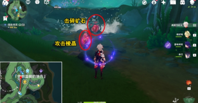 传送过来,向北走,攻击山洞击碎矿石