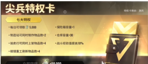1、我们可以开通尖兵特权卡,我们可以获得一个永久的保险箱。