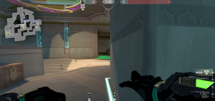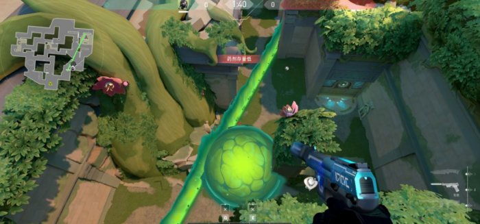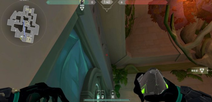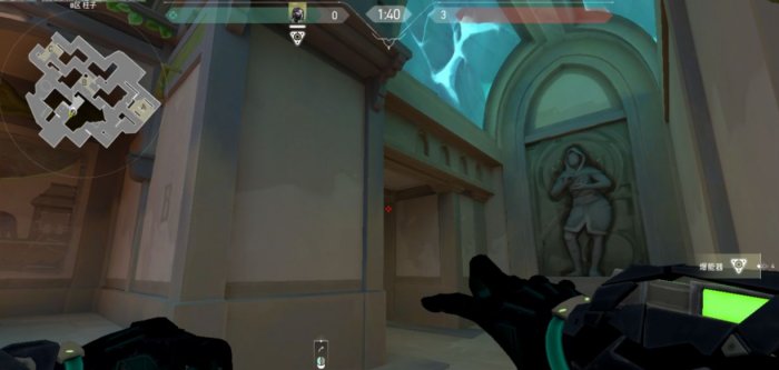 我们前进到B大门口的时候,可以靠墙瞄准这个位置发射蛇吻,别漏身影让别人打掉了。