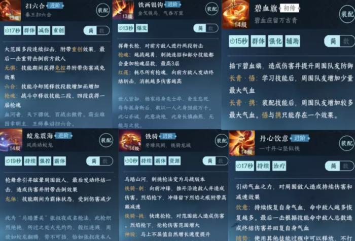 技能:追,铁画银钩,刹那,丹心饮意,乾坤一掷;百家技能:心眼无量,打虎一式;绝技:腾龙跃渊或者红莲焚夜。