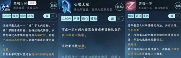 第二种:作为输出推荐携带:心眼无量、墨破山河、繁花一梦