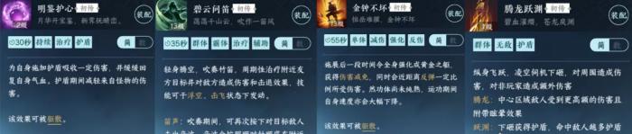 第一种:作为主T或副T推荐携带:明鉴护心、碧云问笛、金钟不坏、腾龙跃渊
