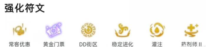 2-1的强化优先选择DD街区、大买特买、天生两星,其他定制强化不拿,刷掉拿战力类型的强化。如果2-1出黄金门票、常客优惠,也可以选择,比定制强化更好。3-2和4-2的强化可以选择定制,或者选择其他战力强化。如果出炼狱合约可以拿,提供大量经济,收益很高,适合7级D牌。另外2-1出白色潘多拉的备战席也不错。