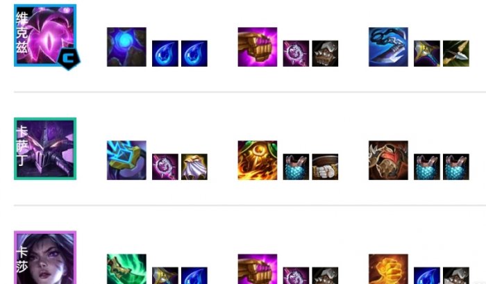 科加斯、玛尔扎哈、卡萨丁、塔莉垭、雷克塞、维克兹、卡莎、奎桑提(8级上)。