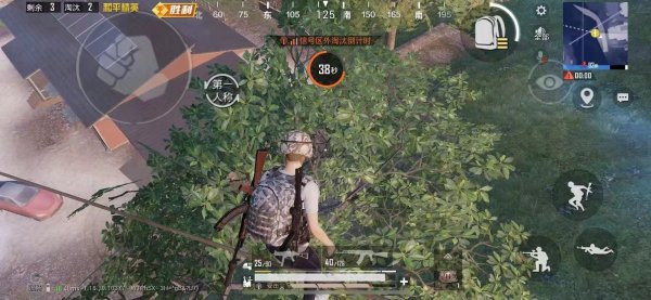 我们可以选择跳到旁边的小野区发展,那里有三座小房子,里面的物资足够武装自己了,然后绕到旁边的小山坡,因为火焰村地势是相对较低的,居高临下很容易打击敌人。