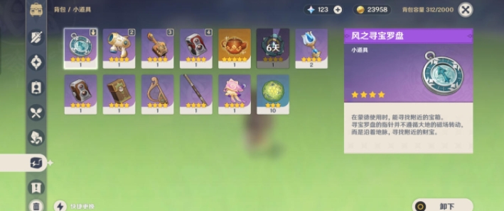 首先制作蒙德寻宝罗盘,但是我发现,到百分之90以上的探索度后,这个寻宝罗盘就很难用了。