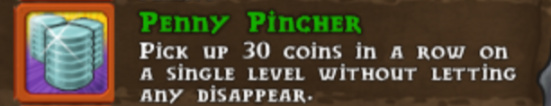 12.铁公鸡,在一局关卡中连续拾取30个硬币且中途不消失。