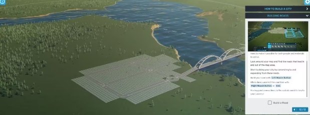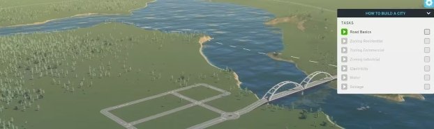 熟悉操作后,就可以开始建造城市了。教程会列出少量任务供您完成,它们涵盖城市的基本需要。每个任务的目的都是建造城市所需的一项公共服务,展示修建道路、划分区域的基础知识。这些任务教程面向新玩家和初学者,但若是遇上前作已有的服务,教程中也会介绍新功能,供老玩家查看。完成任务后,城市就可以开始发展和扩张,加入更多服务和管理。任务列表阶段不可跳过教程,但完成任务后就可以了。