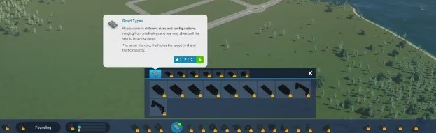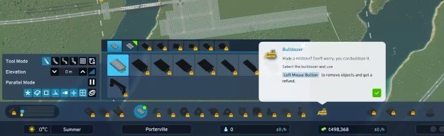 初始步骤气泡框会指向所说明的物品,用绿色高亮圈出图标。它们包含相应功能(诸如道路或服务)的概况信息,而绿色轮廓线会有动态效果,吸引您点击图标,打开菜单,前往下一个教程步骤。如果教程未结束,您就关闭了面板或服务,绿色轮廓线会圈出相应图标和分页,提示您应该去何处寻找。