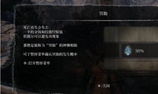 冥助可以帮助我们避免死亡的惩罚,只狼中的死亡会扣除一半的经验和金钱,冥助的发生概率是比较小的。