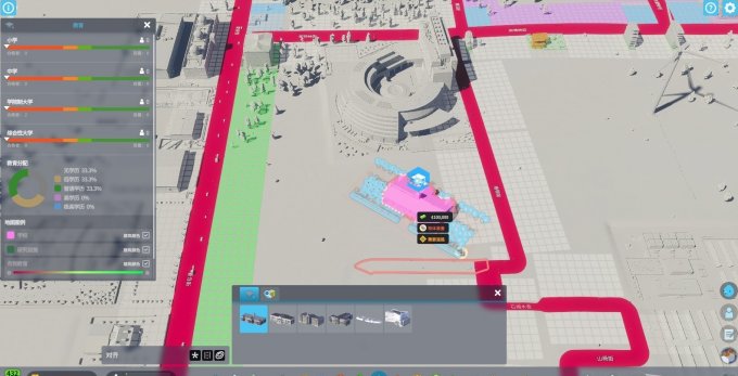 关闭后,按住鼠标右键并拖动鼠标即可将建筑调整至自己想要放置的角度。想要自动对齐道路只需再次点击上图圈出的对齐按键开启对齐功能即可。