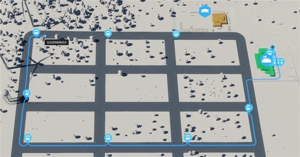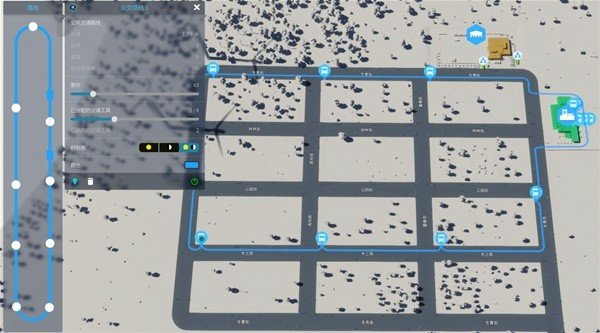 随后我们在公交终点站点击一个线路点位作为初始位置开始划线连接各个站牌,注意连线的时候减少绕路等操作提高运行效率。