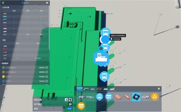 随后在公共交通选择两种站牌其中一个,在想要规划线路的途中放置若干个。