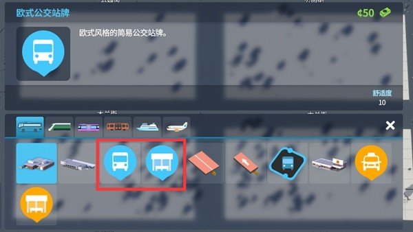 首先放置一个公交终点站。