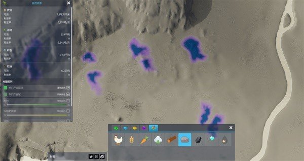 石材、煤炭、矿石开采需要在地图的紫色区域中放置才能够提供资源产出。