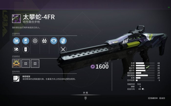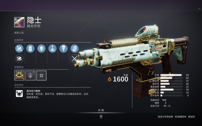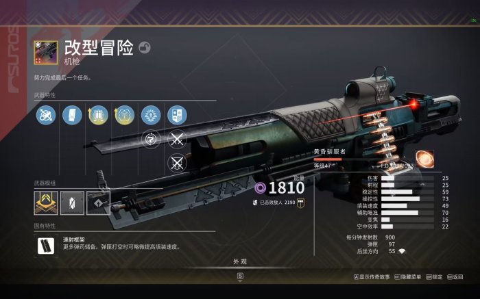 一愿的适配融合,在最后一愿武器perk重做后重新回归大众视野。如果你没有其他融合步枪,这一把在熟悉刷取流程后是可以最快速获得的。同样地也需要双加速