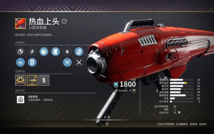 如果爱打pvp,熔炉球比较多,熔炉的碾压也勉强能用。但是天生少一发备弹。现在的热血上头因为没有追踪模块(曾经有),给了这个筒子上场的机会,不然就是被热血上头吊着打。