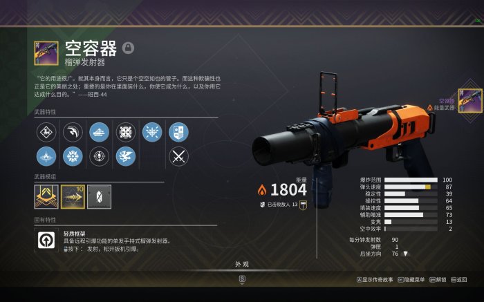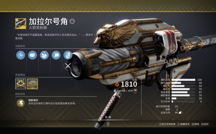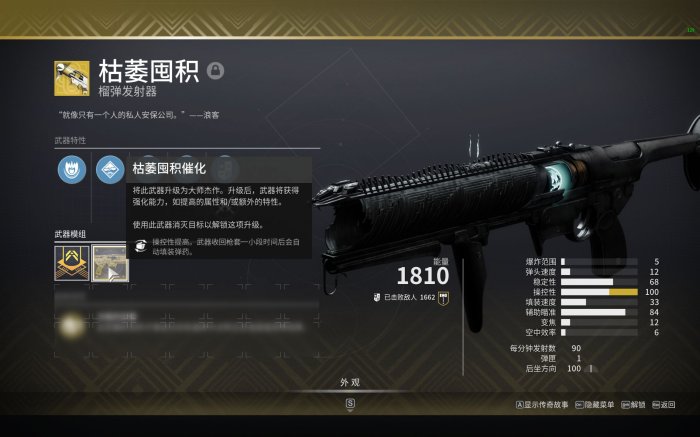 相对好获取的一把筒子,有着不俗的手感与优秀的perk,算是很多人的常用输出火箭筒。但是萌新可能没有足够材料roll,后面的碾压也是一样的道理。