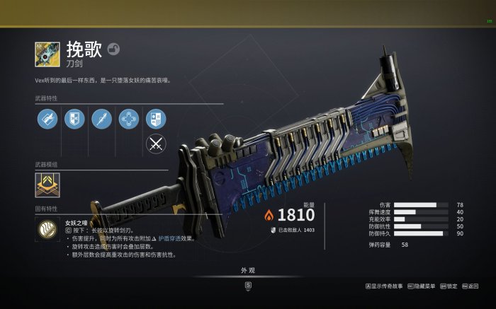 二号位 最后一愿随机掉落(获得五把红框后可锻造,需要遗落之族DLC)