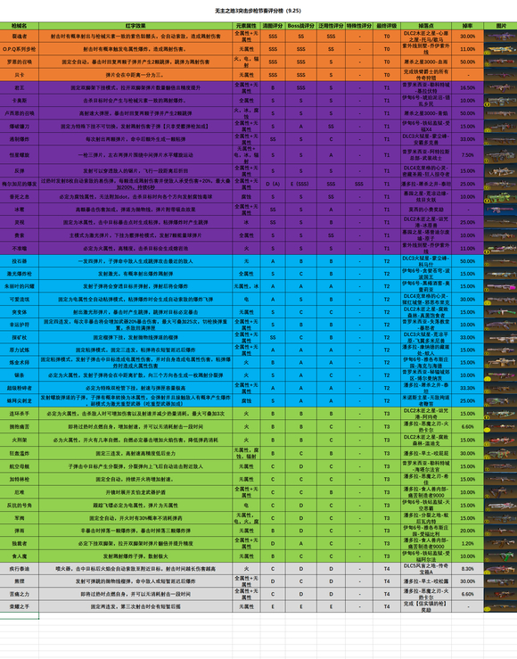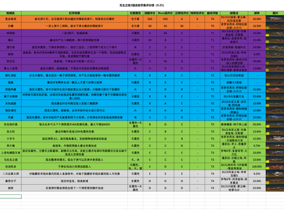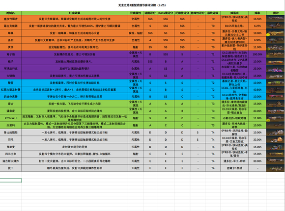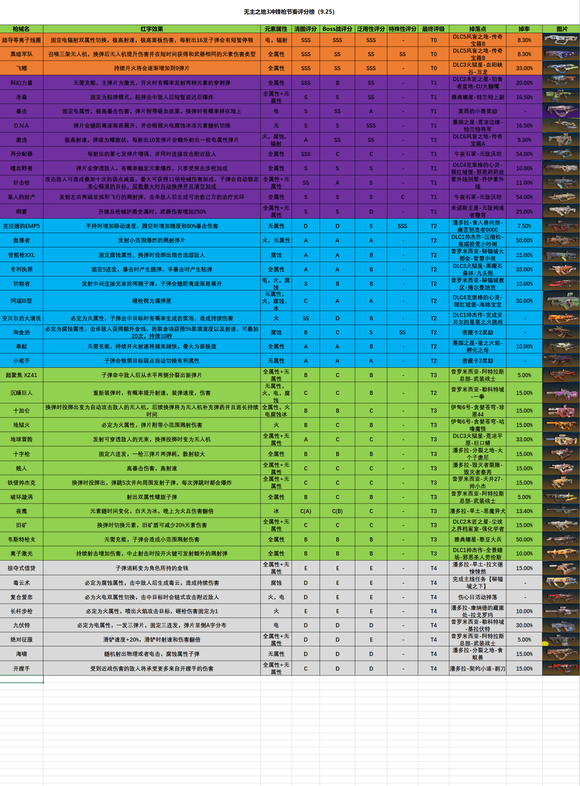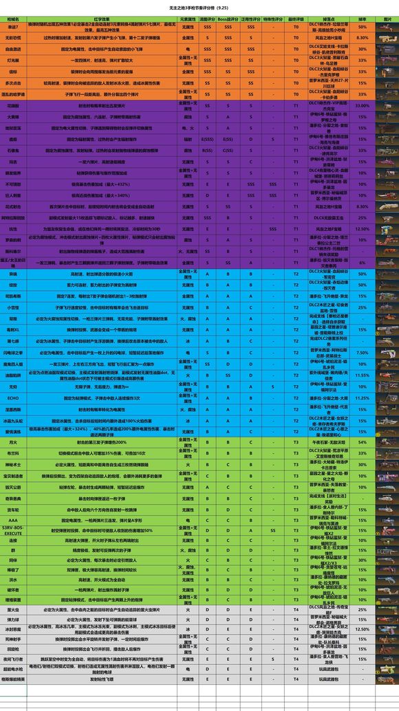 图中对无主之地3里的绝大部分武器做了系统评分,方便大家挑选自己喜欢的武器,希望能帮助到大家。
