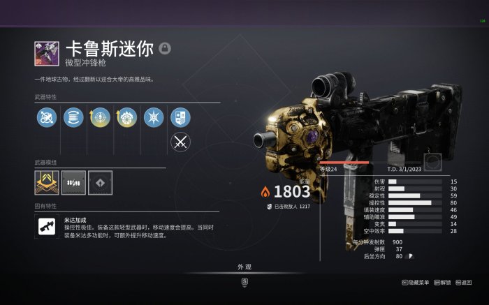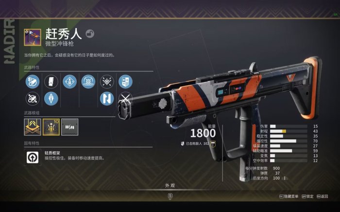使用蜘蛛(曾经的一把神级微冲,隐士,已退环境)的枪模,手感个人认为是最好的。perk还可以,有换单加增伤就能用