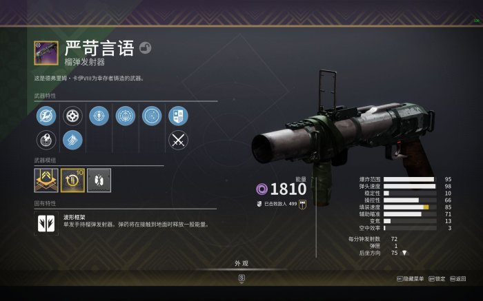 自制 波形榴弹 门徒誓约掉落 可锻造 最适用各种本的清怪枪 属于是我回坑后下本的最初动力 高难低难均可用 缺点不能对空,但不影响他是神