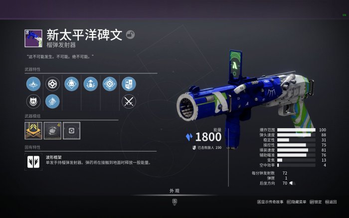 获取难度相对较大,主要是因为这个地牢对萌新不友好,推荐在了解机制后有人带再去刷。主手唯一一把波形榴弹,多用于配合技能回转,清怪效率没有那么出色。
