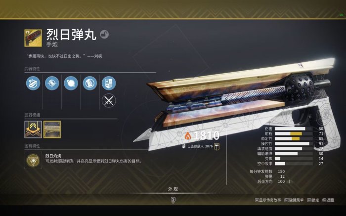 鲁弗斯的狂怒 梦魇根源掉落 可锻造 兼备反勇士与清怪的不错白弹 我只用过重建+肾上腺素成瘾 这套perk是不是最优解不确定 可以问别人