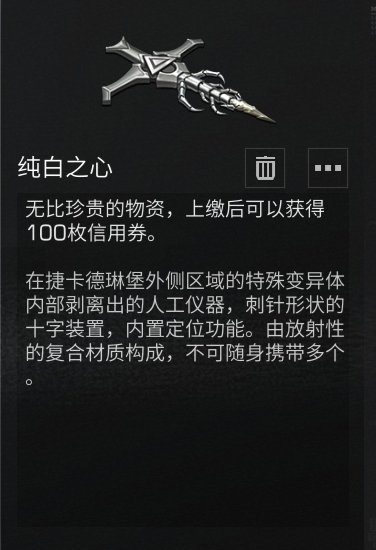 纯白之心可在NPC鲁诺处上缴获取100信用券