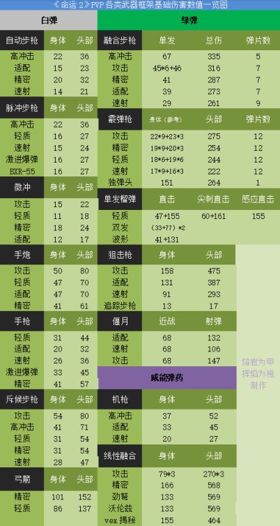 《命运2》PVP紫色武器各框架基础伤害表一览
