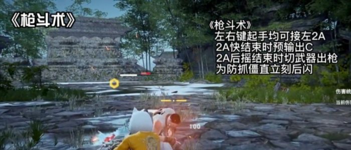 枪斗术,无论左右键起手,接2A,都可以在2A快结束是与输入c切远程射一枪后闪