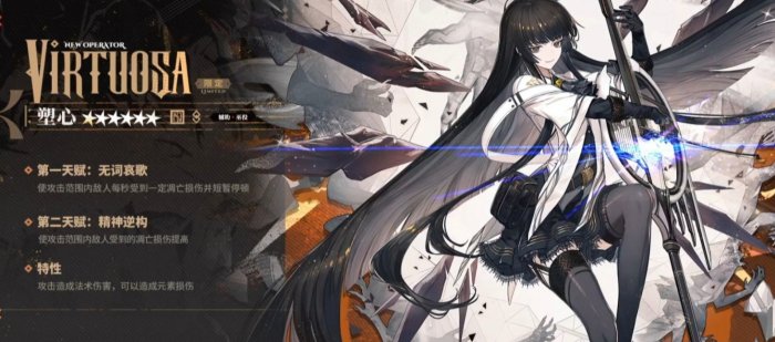 6星限定干员塑心属于是一个很新的模版——巫役。本模版的最大特色,就是可以造成一种全新的元素伤害,大家要注意,这里的元素伤害其实不同于以前大家属性的物理伤害,法术伤害或者真实伤害,是全新的一种伤害类型,会受到敌人元素抗性的影响。换句话说,如果敌人没有元素抗性,并且物理法术抗性很高,那么此时元素伤害就是一个新的思路。