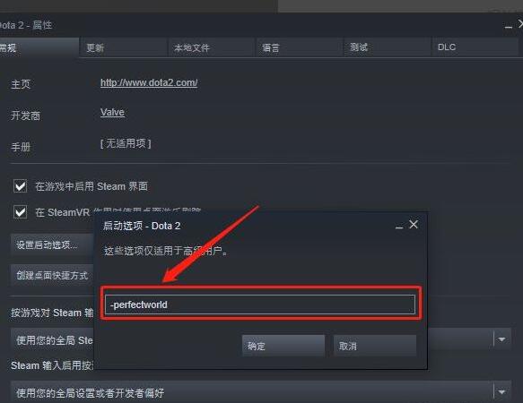 2、点击启动选项,输入“-perfectworld”或者“-perfectworld steam”,分别是国服和国际服。
