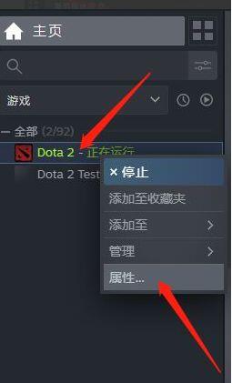 1、切换到国服或者国际服玩。在steam列表中右键Dota2,点击“属性”;