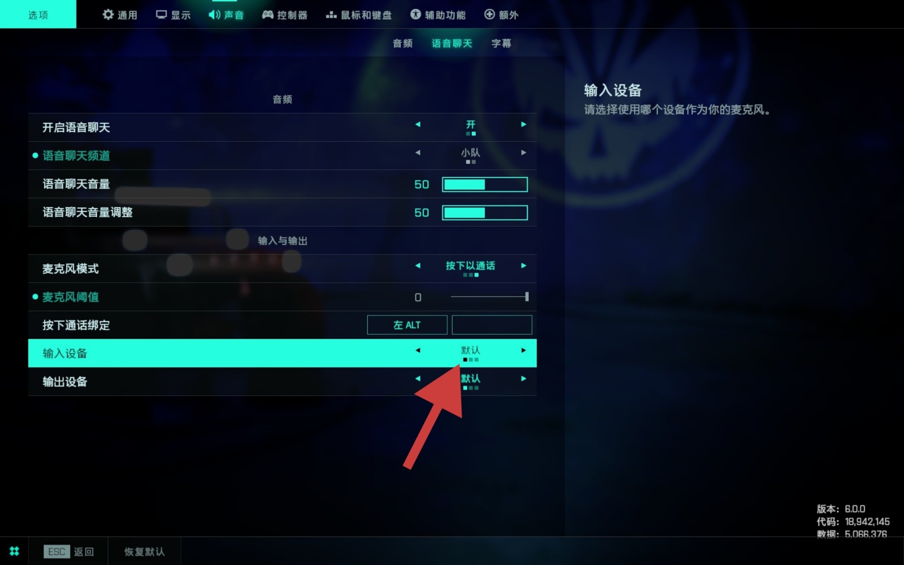 在游戏设置中找到声音-语音聊天-输入设备,调至第三个即可,如果点击后没有反应可能是网络问题,开一下加速器试试,另外可以把声音风格改改,看看自己喜欢哪种