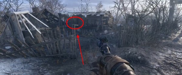 2、来到此处房屋前,边上有着门形建筑,玩家进入到左侧下图中的房间内。