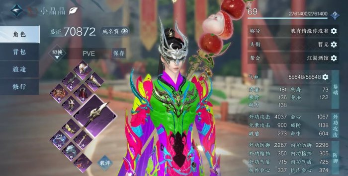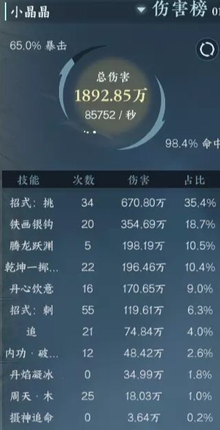 没带楚相玉衣服和谪仙戒指,是为了秒伤稳定,新独珍装备丹心是可以替换掉剑梦三饰品了,至少我这个面板测试出来是这样的,如果大佬有不同玩法搭配欢迎分享!