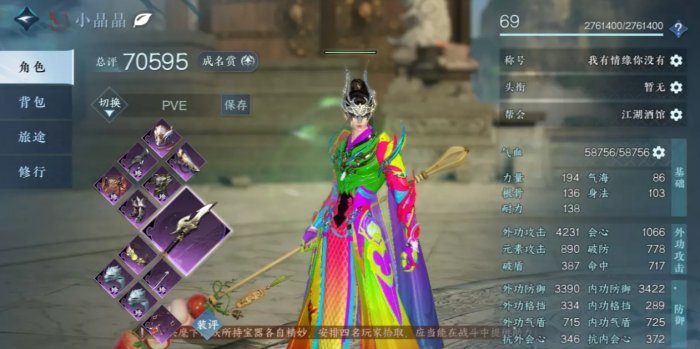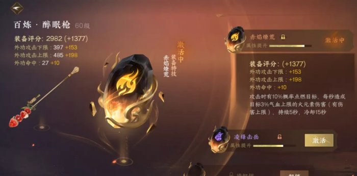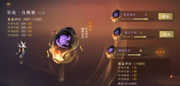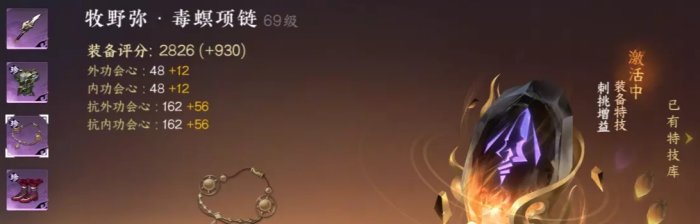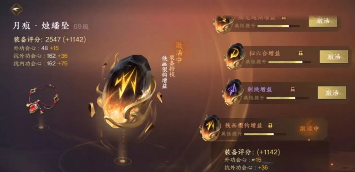 武器带的是【赤焰燎荒】因为没有其他金色,项链带的是【铁画银钩增益】因为我带的是三金三木内功周天,项链还是选择的【鹤唳长空】破防加成,还是因为没有震海潮生!