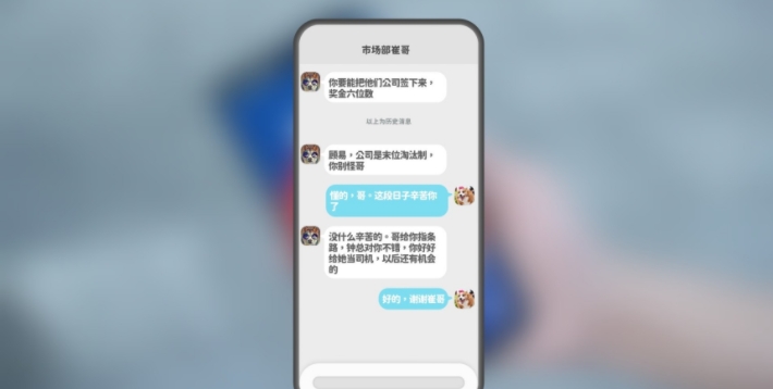 最后是第五章与钟甄的邂逅,带着老板把公司当成游乐场,帮助其释放出自己的天性,找到属于平凡生活的乐趣。对话也反应出钟甄是一个非常需要这种平凡乐趣的女性。