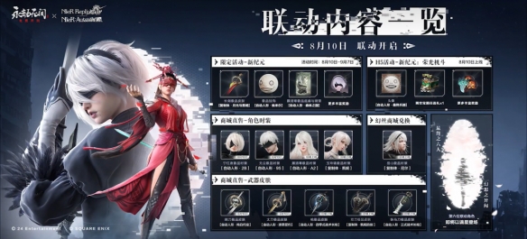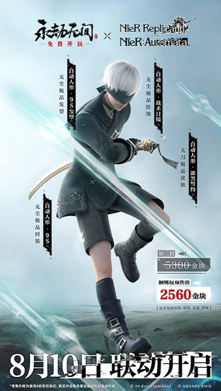 1、永劫无间×尼尔机械纪元活动,将于8月10号开启,多款人物与武器皮肤发售。