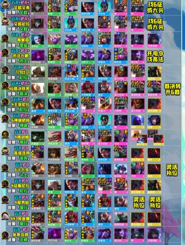 4阶段:4-1或4-2启动,23费牌基本得搜出全2星,关键4费比如慎就1星没关系,希尔科1星也够,然后开始攒经济