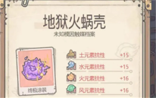 这款蜗牛壳的攻击力极高,是游戏中的攻击型装备。它的特殊技能是可以在攻击时产生额外的火焰伤害,对于喜欢攻击的玩家来说,这款蜗牛壳是非常合适的。但是,“地狱火蜗壳”的防御力较低,玩家在使用时需要注意保护自己,避免被敌人一击击败。