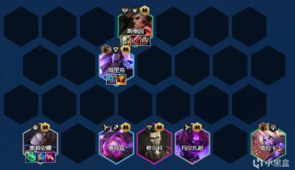 阵容组成:奥利安娜(发条)、斯维因(乌鸦)、索拉卡、维克兹、塔里克、希尔科、阿狸、嘉文四世。