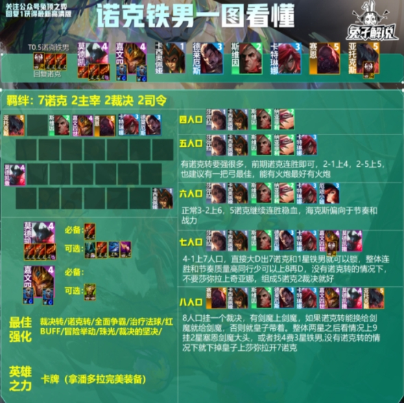 恕瑞玛同样是有转职会强势很多的阵容,可以舍弃一张低费卡请个强力的外援加战力,也是当前版本非常不错的选择,同样是有两个转能上九开大羁绊的阵容