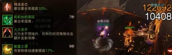 点开状态栏可以看到我们站着不动心魔召唤物也会触发莉莉丝的哀叹、能量之源等效果