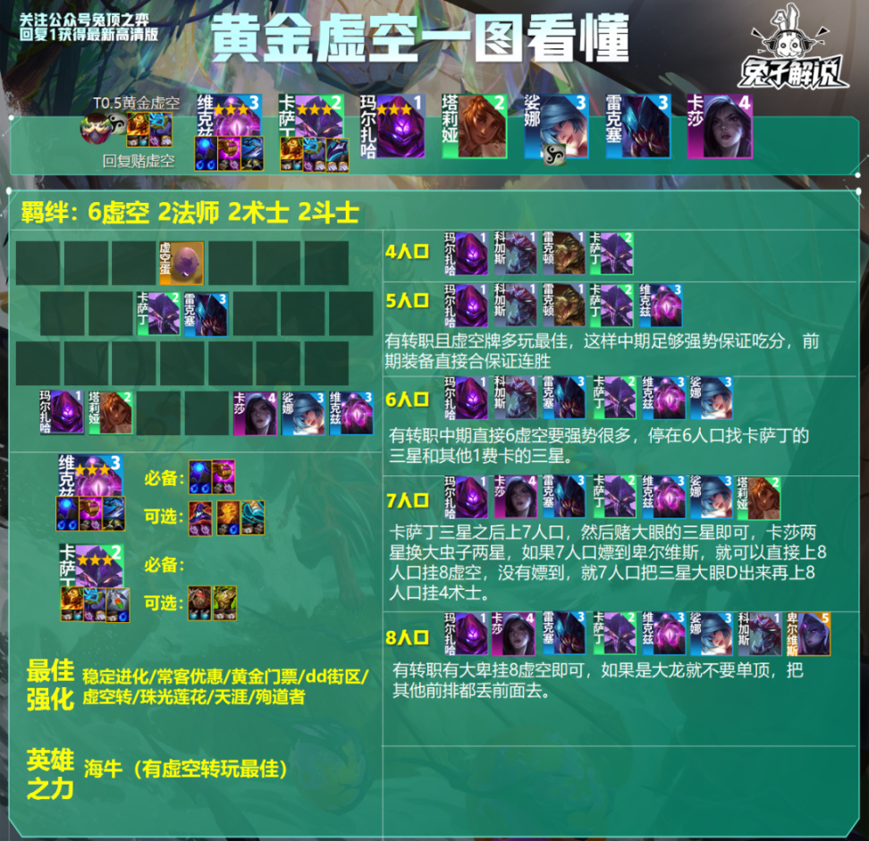 开到恕瑞玛转时候就奔着这套去打,当前版本恕瑞玛虽然加强了很多次,但因为对主C主坦装备都有要求比较难完美神装,所以玩的人反而没有那么多,但和诺克阵容一样很好从6恕瑞玛到九恕瑞玛,不怎么需要更换奕子,所以不怕手忙脚乱