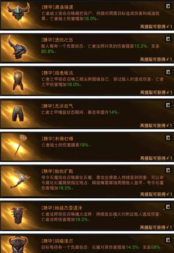 亡者法师选择火法师和护肩负面状态增伤,一个负面状态可以提升15%的伤害,至多60.8%,那么如果你有星火碎片和幽暗之瞳可以给到点燃以及撕裂(有CD)带上腐化石魔可以全程有腐蚀状态吃,再加上毒宝石等几乎可以长时间把60.8%增伤拉满。