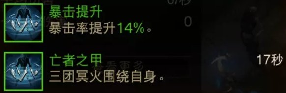 亡者之甲选择衣服带3根尖刺围绕增加伤害输出,同时亡者之甲增益状态期间暴击提升14%,亡者之甲也是吃维图和增益词条收益的。