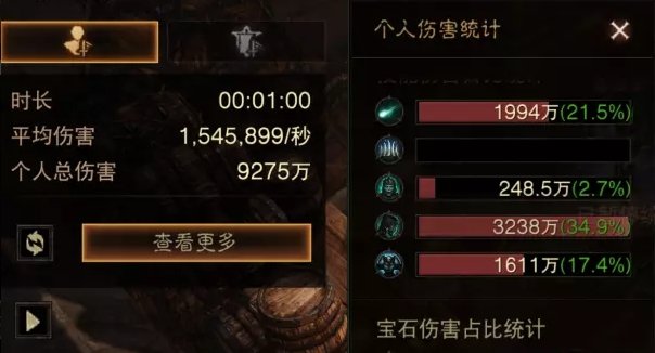 (主手截图是无死绝生截错了,大家无视,带的是刺骨钉锤给亡者战士直接增伤19%,小编特意测试过把刺骨钉锤换成无死绝生自爆加急速,测试1分钟下来没有带刺骨钉锤伤害高,因为头部没有搭配覆眼黑金)