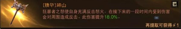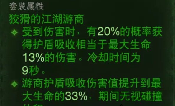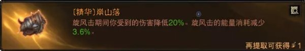 护肩的选择上还有一个崩山落,让旋风击期间受到的伤害减低20%,也基本等于减伤20%了,因为我们在人群中多数还是用旋风击较多。